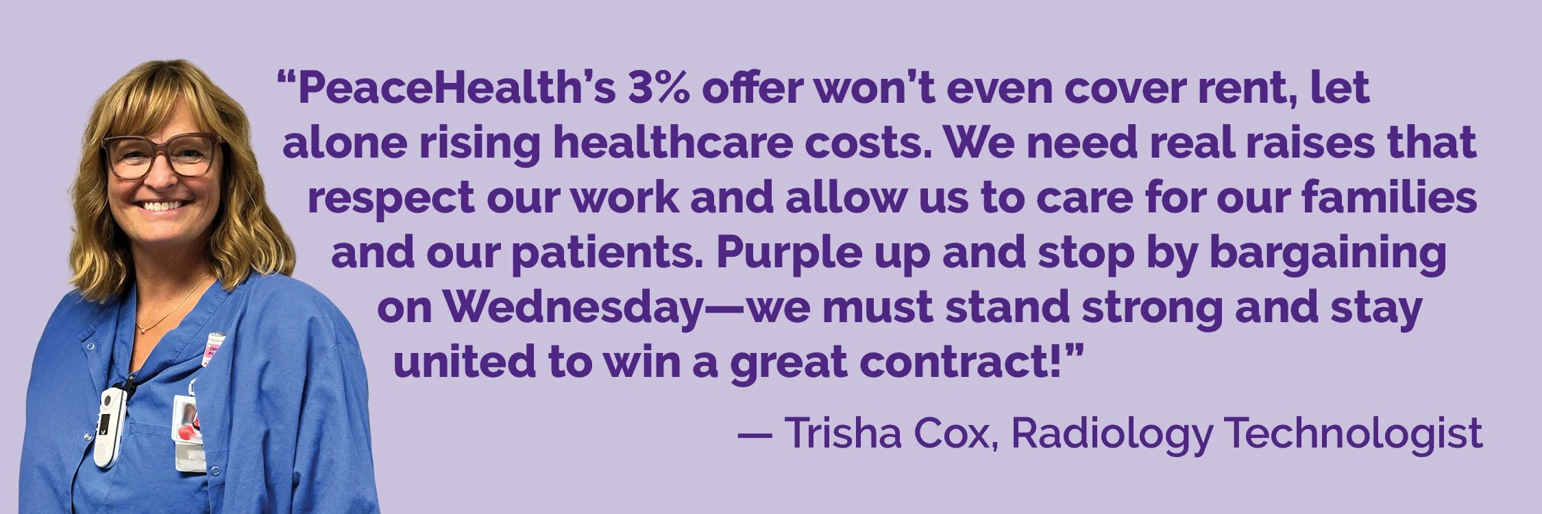 💜 Your SEIU49 Bargaining Team proposed wages that caregivers need, and wages that keep up with other PeaceHealth facilities.