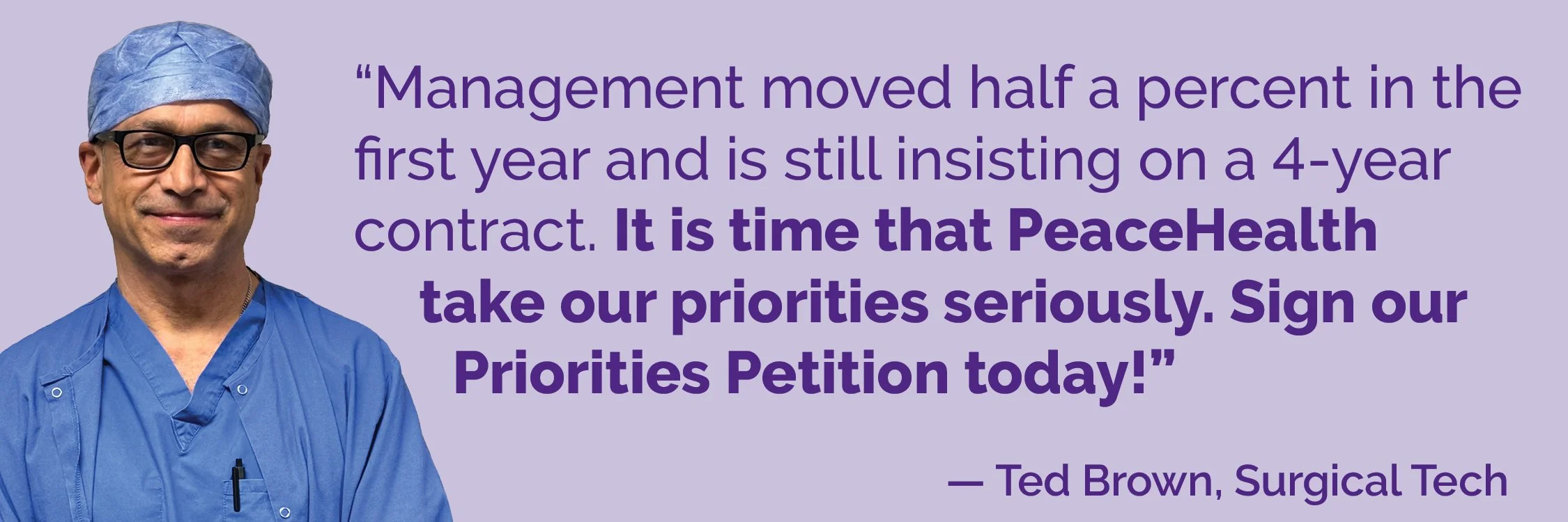2). Sign our union petition — We are demanding PeaceHealth pay fair, livable wages; affordable healthcare; grow with our union; and respect and protect its caregivers. Stand with coworkers across PeaceHealth Systems as we call for a stronger, safer PeaceHealth where our patients can receive the care they need and our community can thrive!